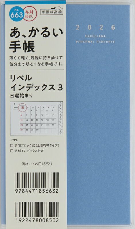 TAKAHASHI 高橋書店 2026 4月始まり 手帳 A6 No.663 リベル インデックス ・・・