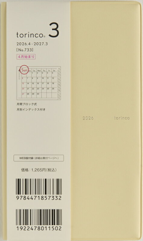TAKAHASHI 高橋書店 2026 4月始まり 手帳 A6 No.733 torinco トリン・・・