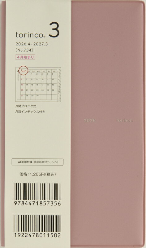 TAKAHASHI 高橋書店 2026 4月始まり 手帳 A6 No.734 torinco トリン・・・
