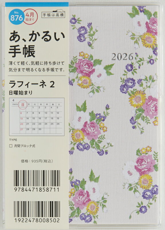 TAKAHASHI 高橋書店 2026 4月始まり 手帳 A6 No.876 ラフィーネ 2 高橋 ・・・
