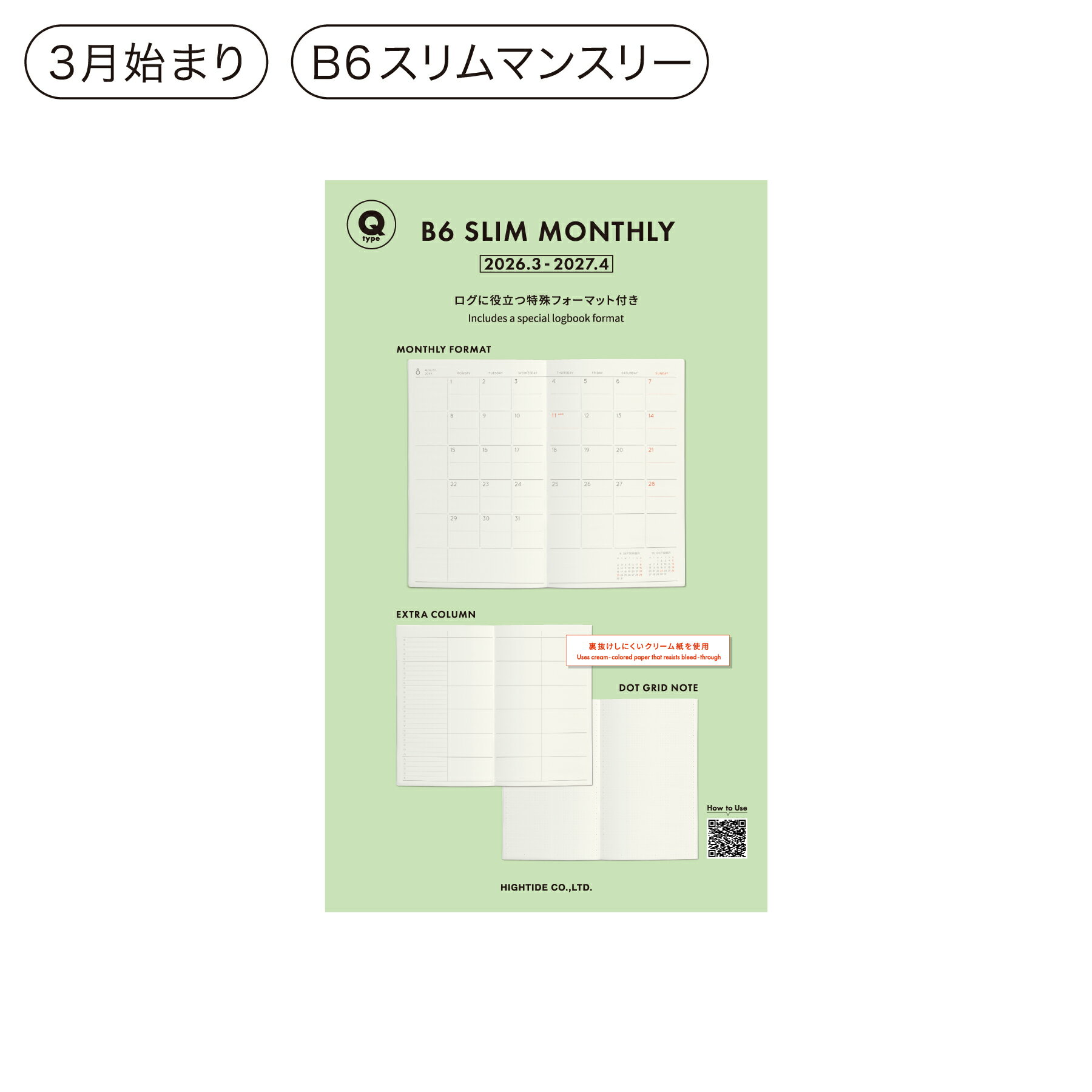 ハイタイド 手帳 2026 / Qタイプ リフィル / B6 スリム マンスリー / 2026年3月・・・