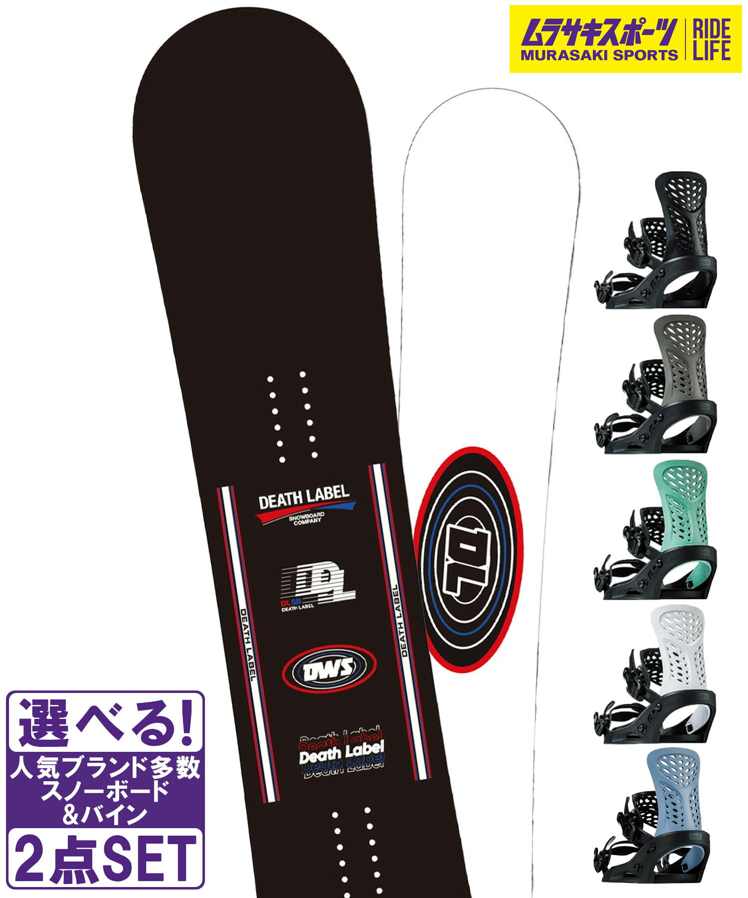 ☆スノーボード+バインディング 2点セット DEATH LABEL デスレーベル DWS RIDE ・・・