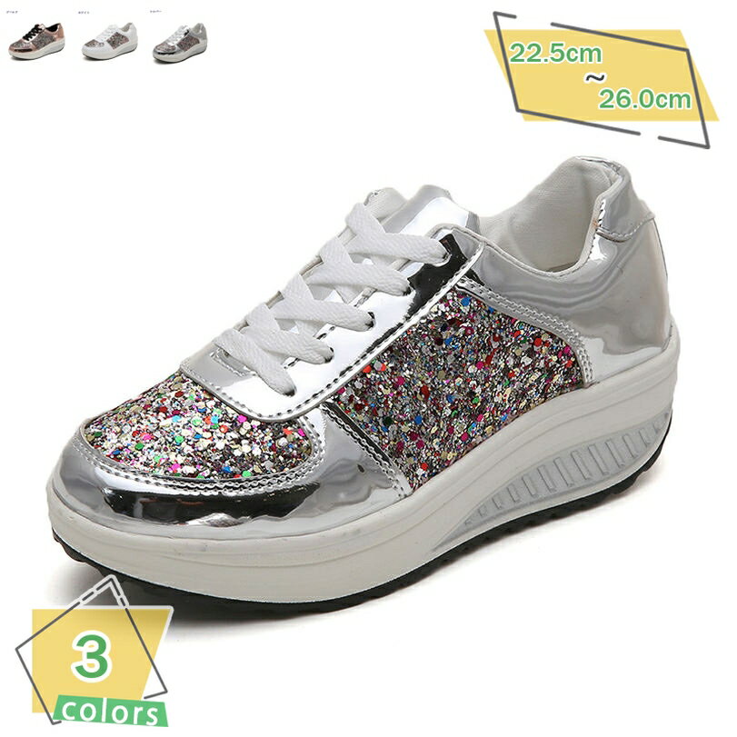 編み上げ 厚底 スニーカー レディース キラキラ スパンコール シューズ 厚底シューズ カジュアル ・・・