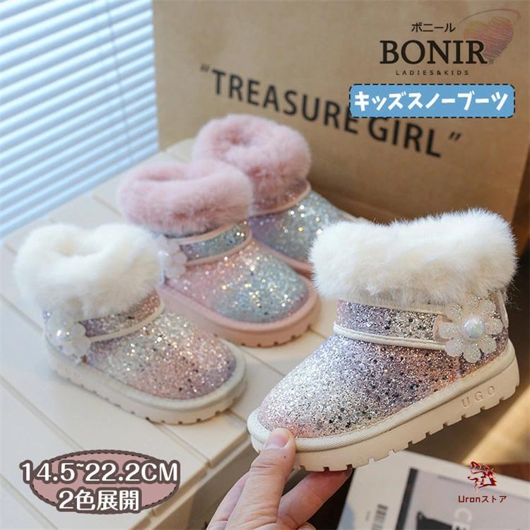 スパンコール 女の子 スノーブーツ 冬用ブーツ フェイクムートン ミドルブーツ 裏起毛 防寒 裏ボア・・・