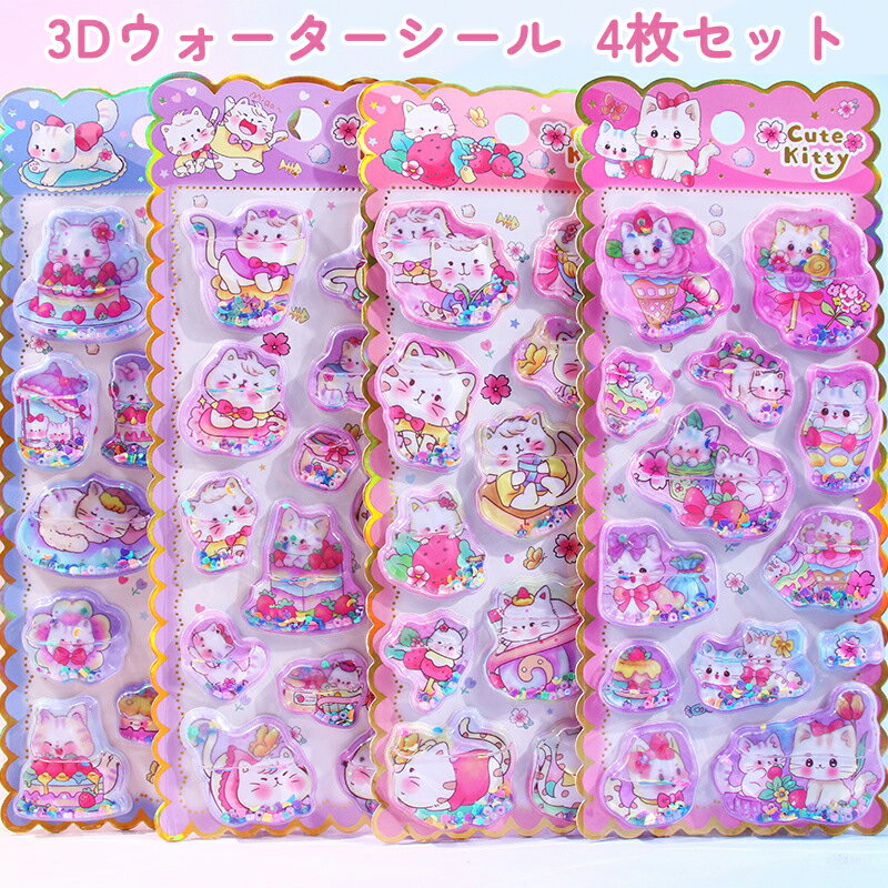 「翌日配送」ウォーターシール 水入りシール ぷくぷく 3D 立体 4枚セット スパンコール入り キラ・・・