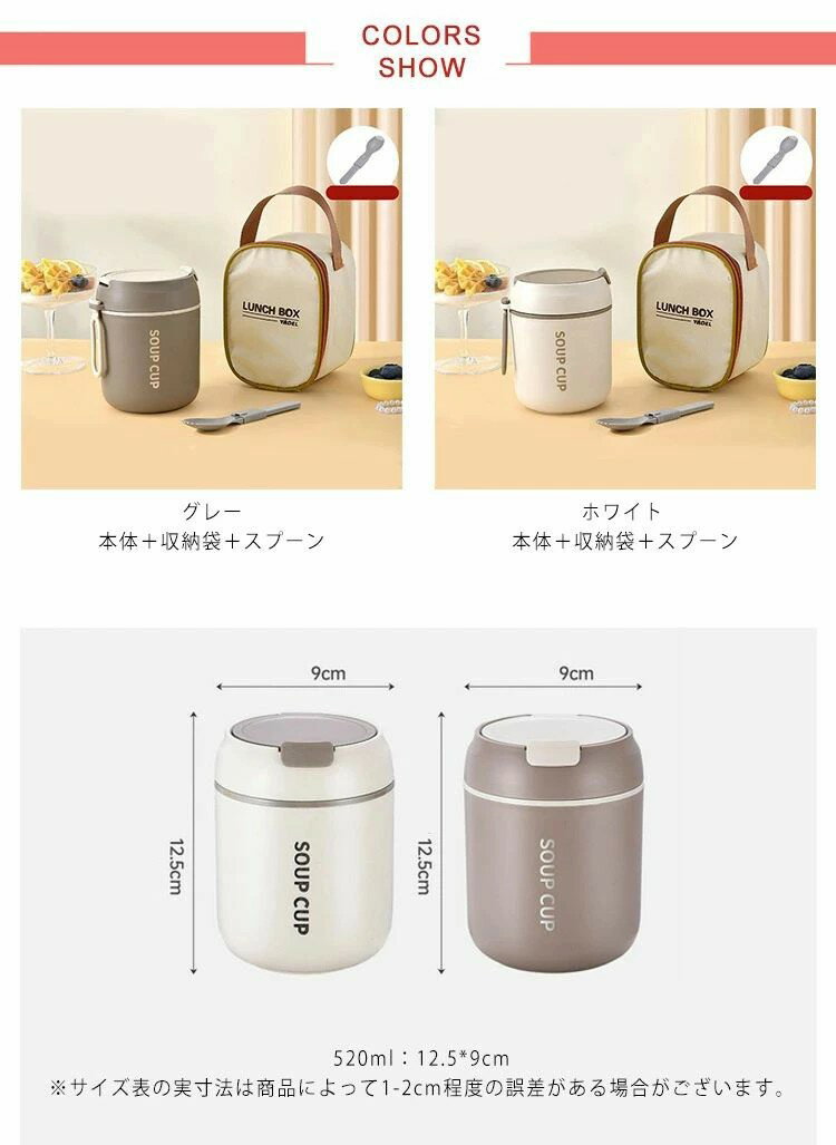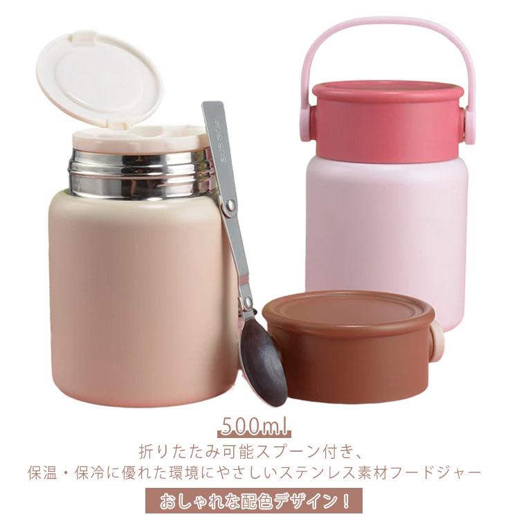 スープジャー 配色 おしゃれ 保温弁当箱 スプーン付き 保温 カラフル スープ 弁当箱 ハンドル付き・・・