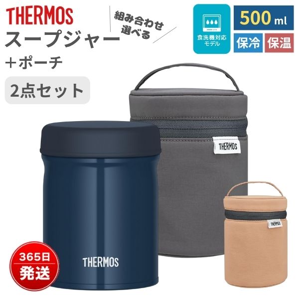 サーモス スープジャー 500ml ポーチ付き セット 食洗機対応 保温弁当箱 保冷 真空断熱 洗え・・・