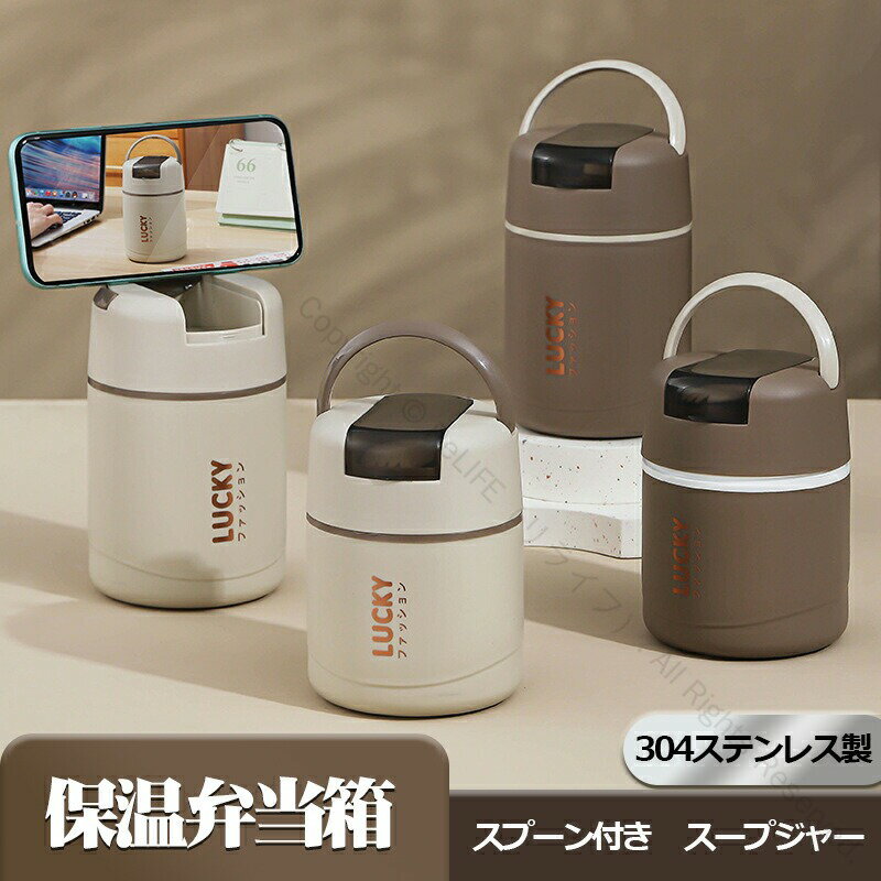 スープジャー 保温弁当箱 500ml 600ml 304ステンレス製 真空断熱構造 持ち運び便利 ラ・・・