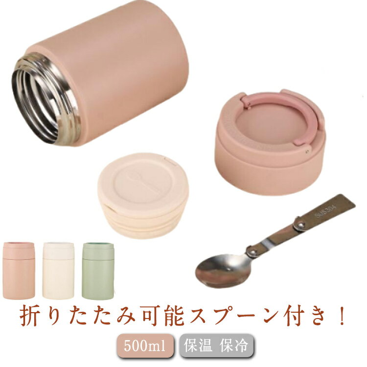 ランチジャー 折りたたみスプーン付き スープジャー 折りたたみスプーン付き 持ち手付き 保冷 お弁当・・・