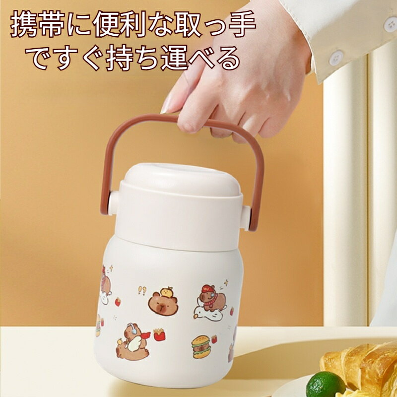 ベージュ 軽量 火傷防止 スープポット しゃれ ランチジャー 真空断熱 持ち運び 304ステンレス ・・・