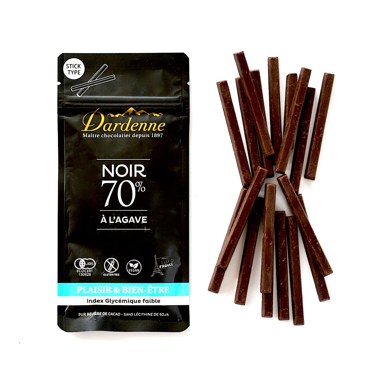 Dardenne(ダーデン) 有機アガベチョコレートスティック カカオ70% 62g