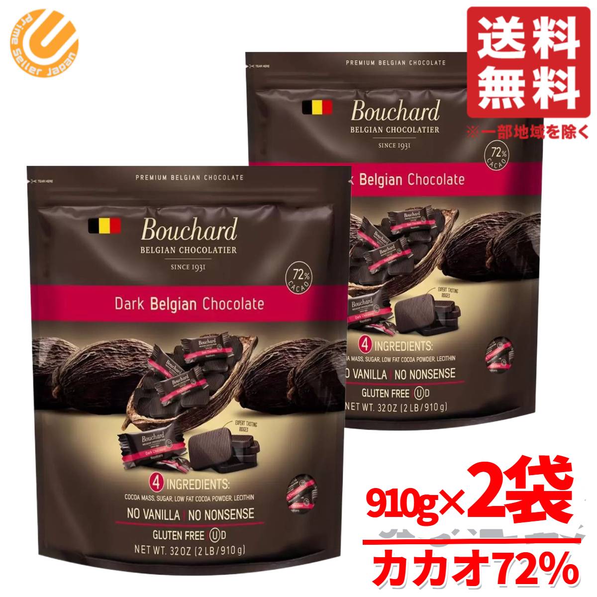 チョコレート カカオ70%以上 個包装 大容量 910g×2袋 ブシャール ダークチョコ ハイカカオ・・・