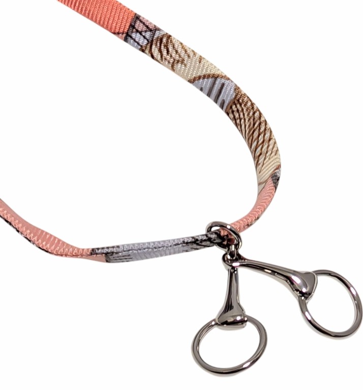 新品同様 エルメス トゥールビヨン ネックレス リボン ビット シルクコード チョーカー ピンク ベ・・・