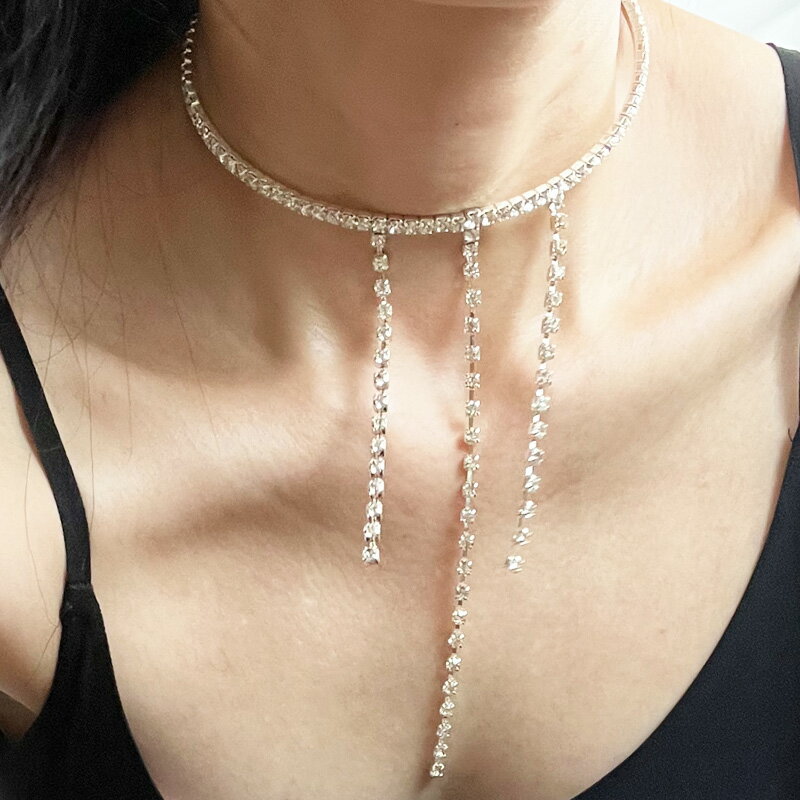 チョーカー ネックレス レディース ラインストーン シルバー フリーサイズ