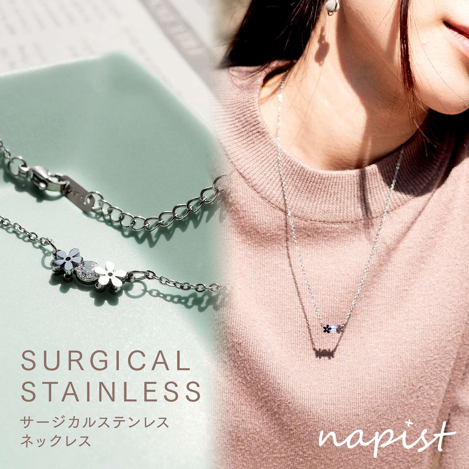 フラワーモチーフ ネックレス チェーン レディース サージカルステンレス ネックレスチェーン チェー・・・
