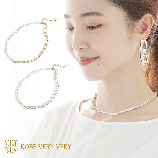 楽天スーパーSALE 送料無料☆ 結婚式 パールネックレス チェーンネックレス バイカラー 金属アレ・・・
