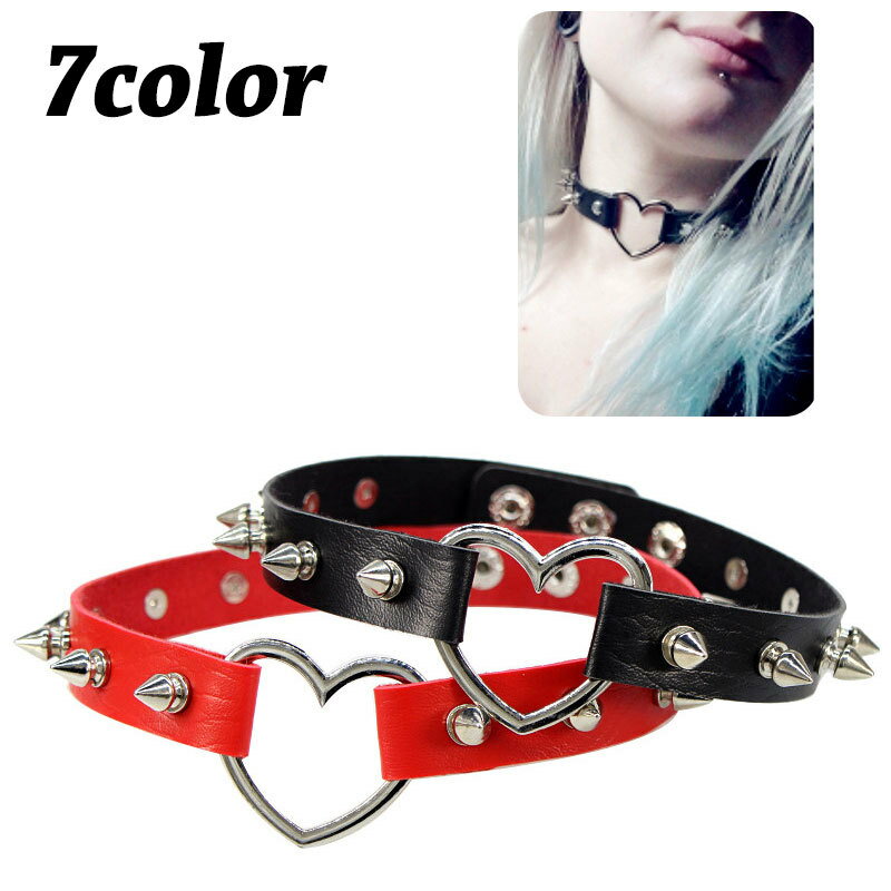 クレイジーカラー フロントリングレザーゴシックパンクチョーカー 【8・ブルー×レッド/ハートリング・・・・