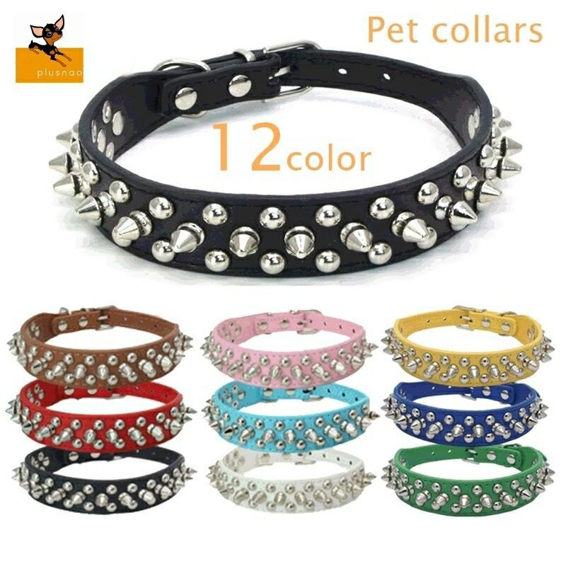 送料無料 首輪 犬用 カラー スタッズ付 レザー調 ベルト式 お散歩 お出掛け チョーカー 鋲 ペッ・・・