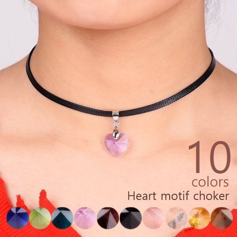 送料無料 チョーカー ネックレス レディース アクセサリー 首飾り クリスタル風 ハート型トップ ジ・・・