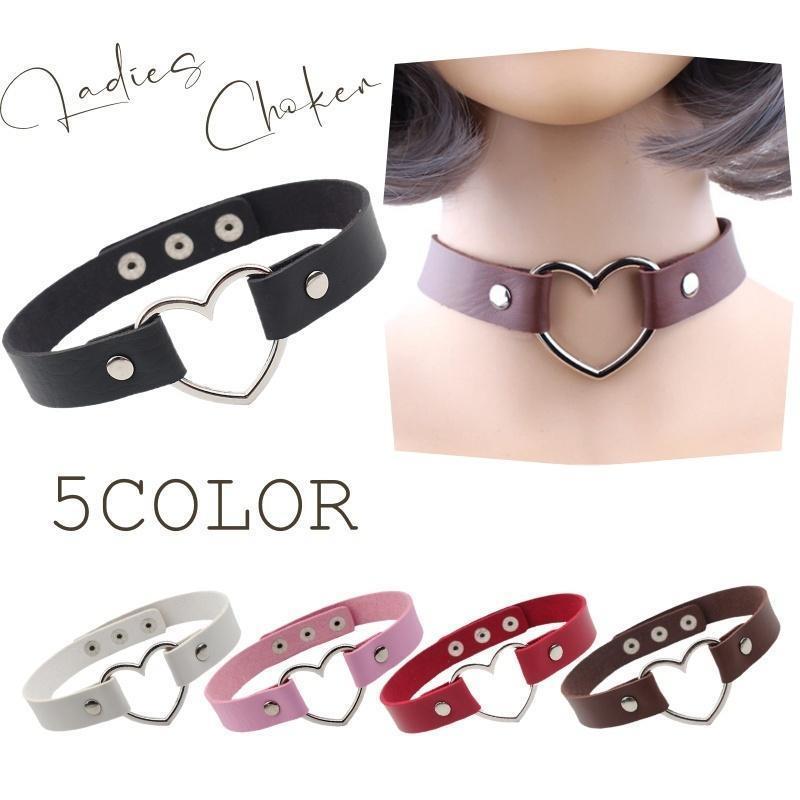 チョーカー ネックレス レディース シンプル ハート リング PUレザー フェイクレザー ボタン お・・・