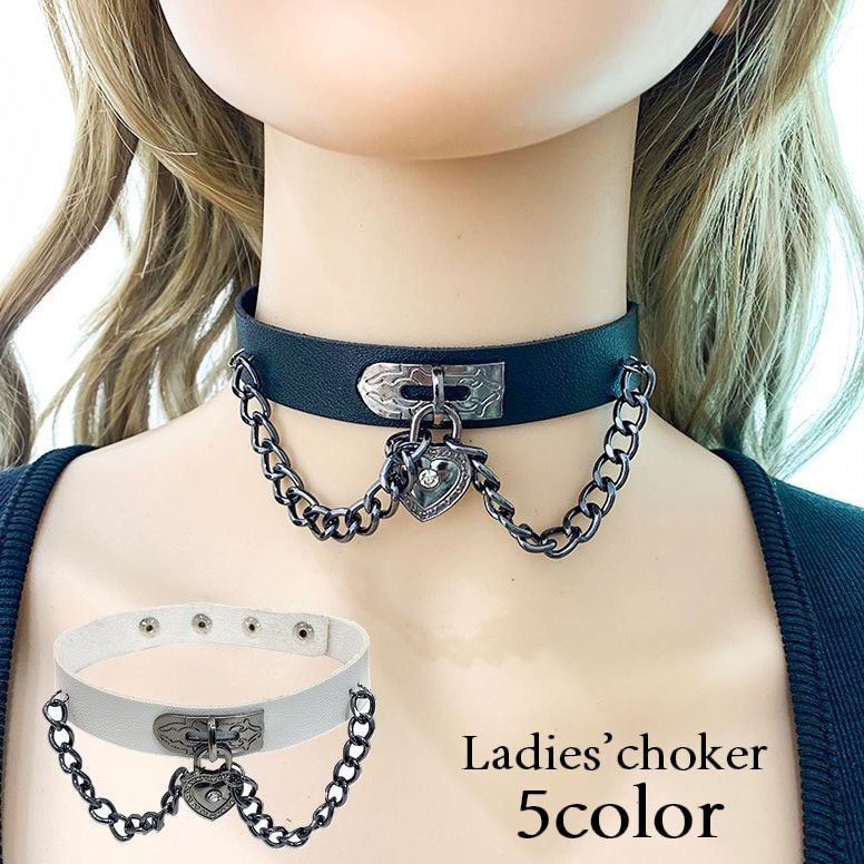 送料無料 チョーカー レディース 女性用 アクセサリー 首飾り 首輪 ハート チェーン 鎖 レザー調・・・