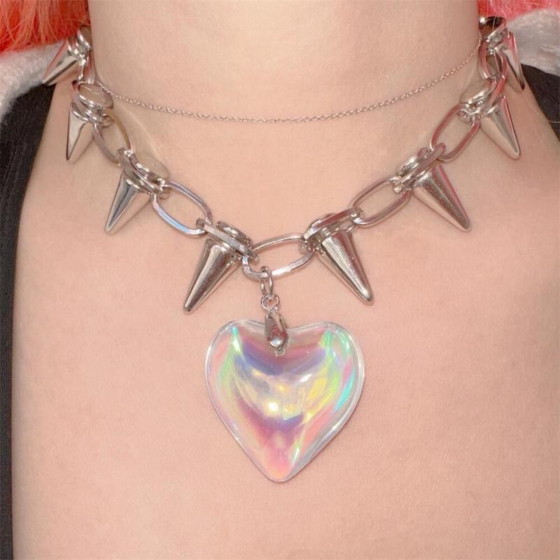 ネックレス ユニセックス 男女兼用 合金 パンク ロック リベット ハート レーザー光沢 レトロ ヴ・・・