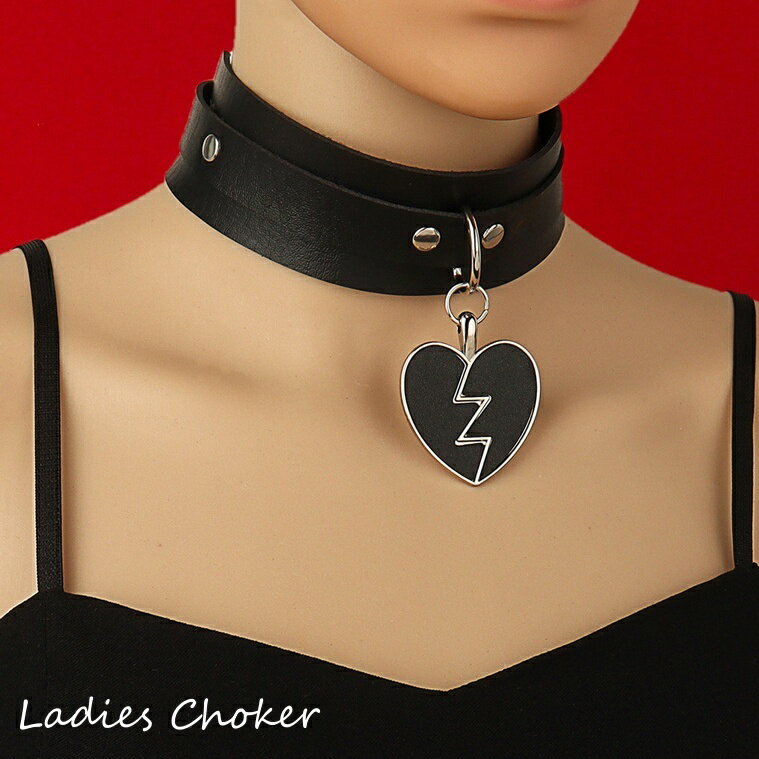 送料無料 チョーカー レディース アクセサリー パンク ハート ワイド 太め ネックレス フェイクレ・・・