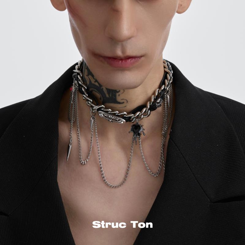 パンクロックシルバーハートリングのPUネックレスチョーカー ボンデージジュエリー