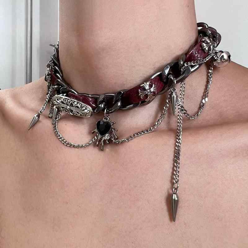 チョーカー 男女兼用 スタッズ メタル レザー ハート パンク Y2K サブカルチャー 個性派 ハン・・・