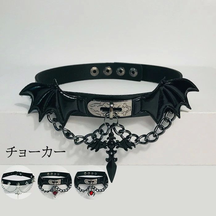 チョーカー 黒 ブラック ハート クロスモチーフ スパイダー スタッズ 4タイプ レディース エレガ・・・