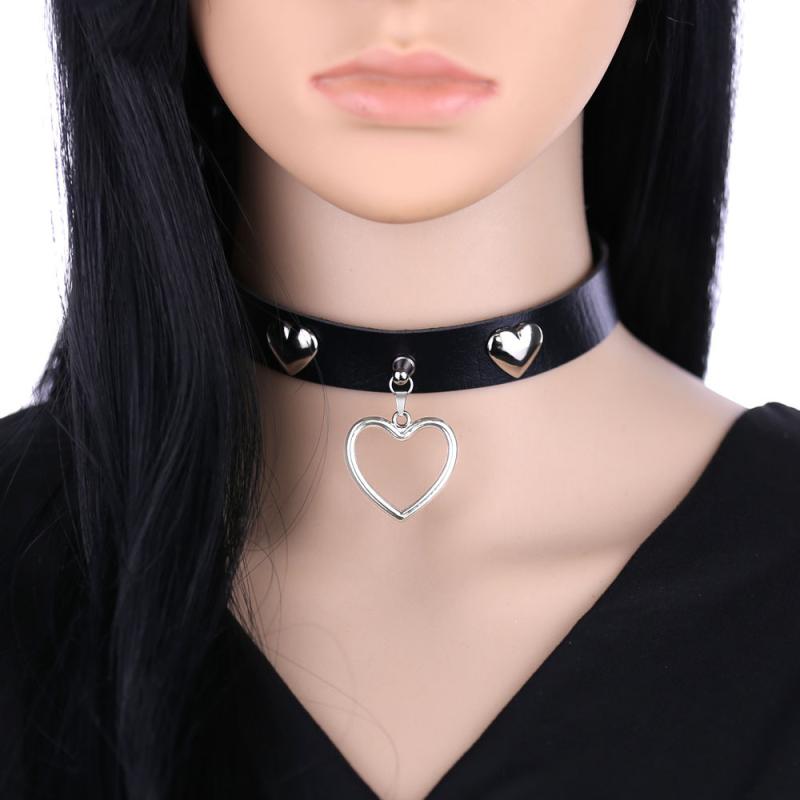 チョーカー ユニセックス パンク ロック ハート スタッズ PUレザー ネックレス 鎖骨飾り 合皮製・・・