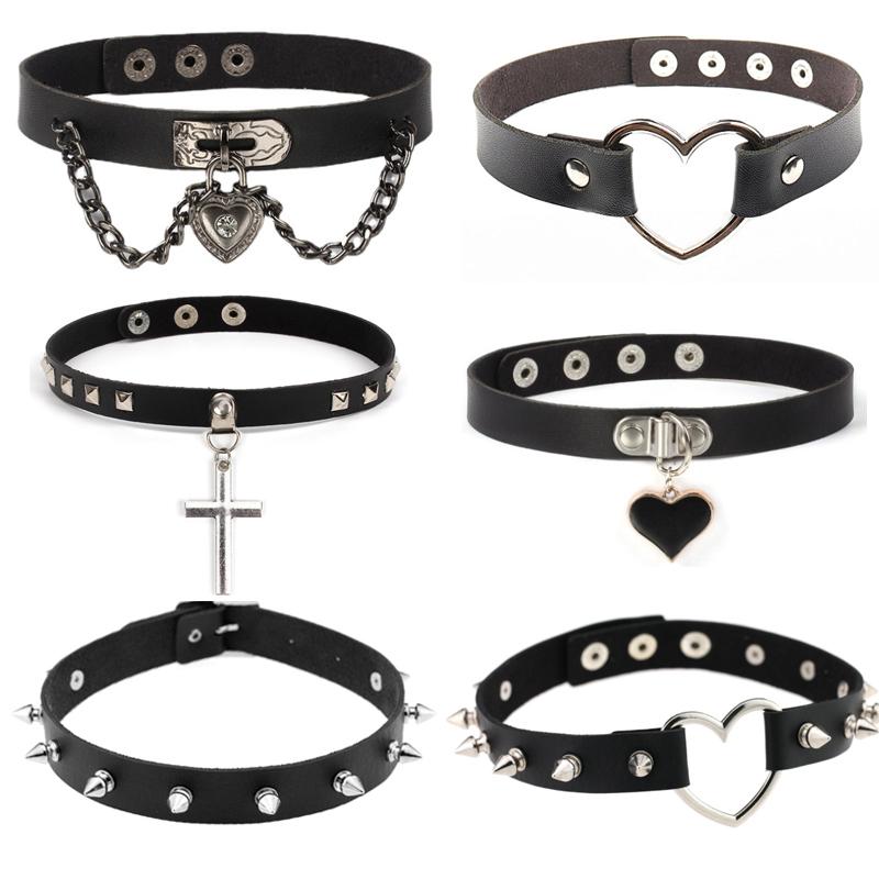 チョーカー レディース 欧米風 ロック パンク 個性的 ボリューム感 レザー 合金 メタル ハート ・・・
