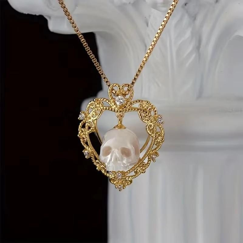 ネックレス 男女兼用 ハート スカル ドクロ 透かし彫り オープンワーク ゴシック ストリート ファ・・・