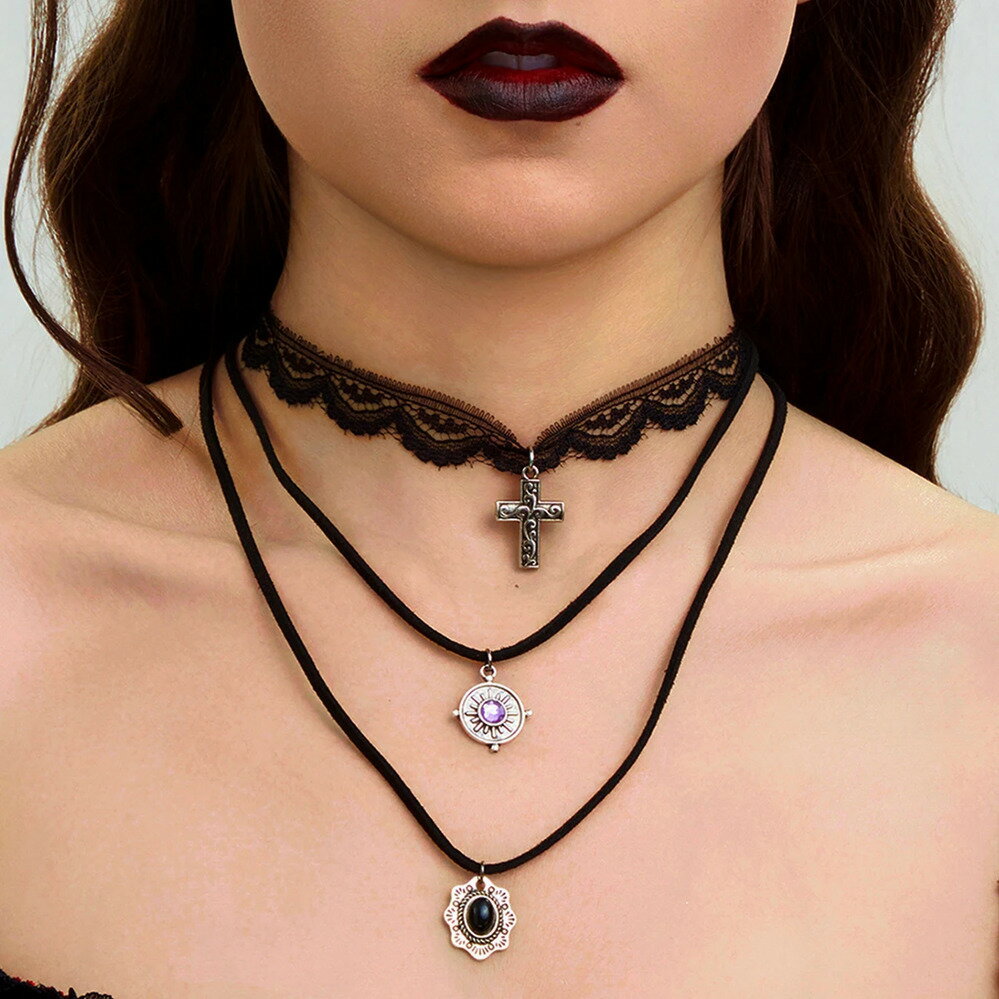 ネックレス 男女兼用 ゴシック パンク ダーク系 欧米風 レトロ ヴィンテージ 個性的 ハート リボ・・・