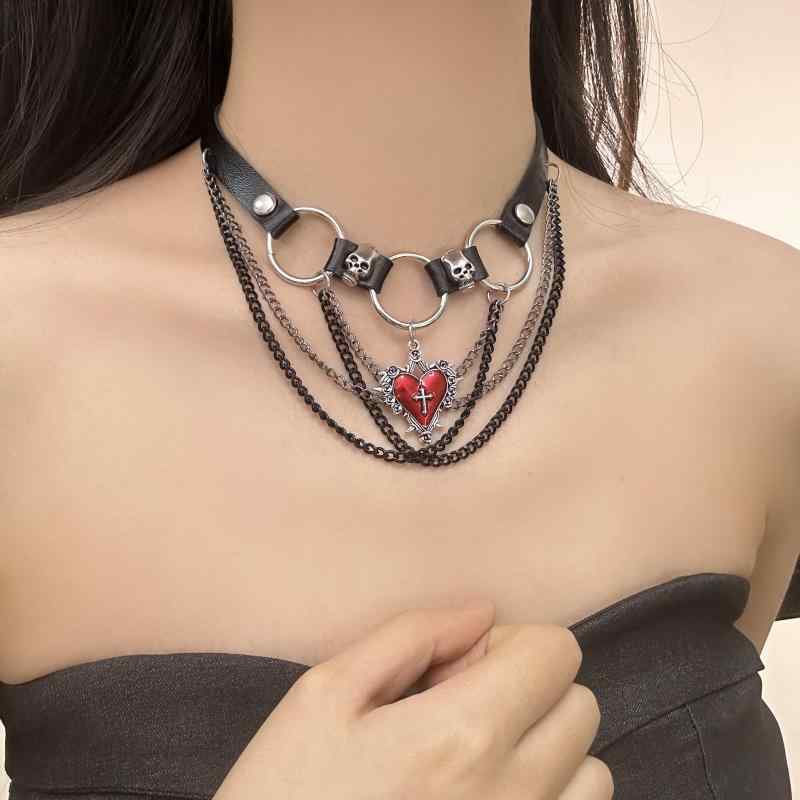 チョーカー ユニセックス 男女兼用 スタッズ メタル レザー ハート パンク ネックレス 鎖骨ネック・・・