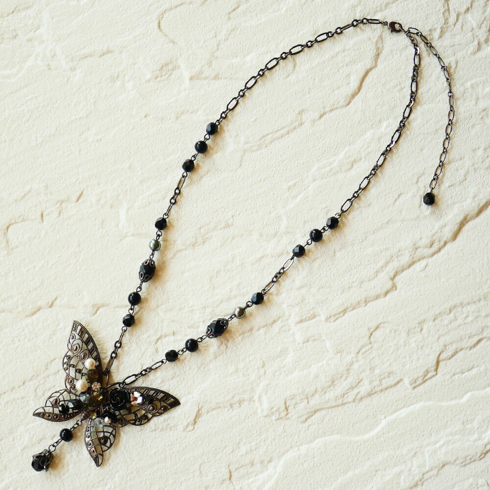 ネックレス ブラック 蝶 ビーズ 黒 ゴスロリ パーティ 大きめ