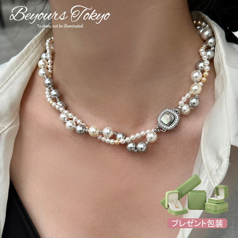ネックレス 2連 パール ショート パールネックレス ホワイト ゴールド チョーカー シンプル レデ・・・