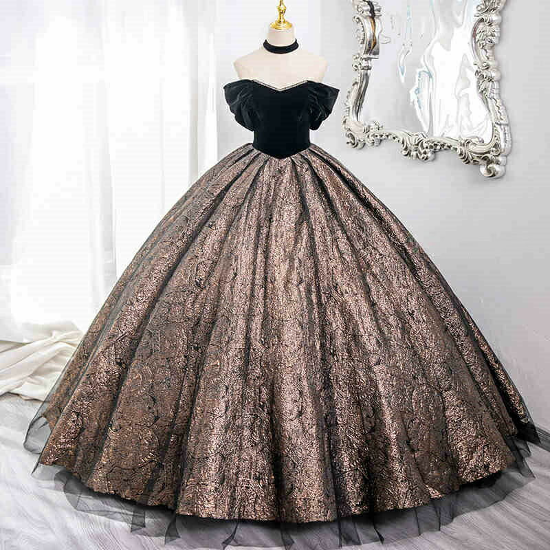 カラードレス ロングドレス パーティードレス ゴールド 黒 オフショルダー 模様 ブラック チョーカ・・・