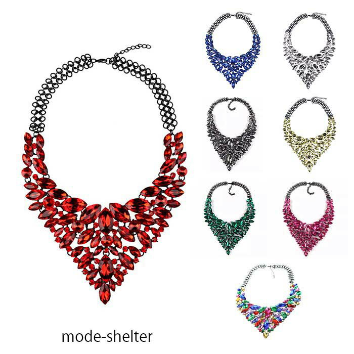 【 即納 有】ビジュー ネックレス チョーカー 赤 青 白 レッド ブルー ホワイト イエロー カラ・・・