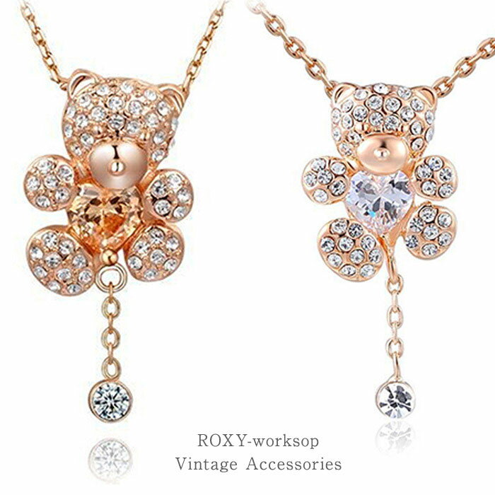 【送料無料】 ネックレス ペンダント ベア クマ ガーリー キュービックジルコニア CZ チョーカー・・・