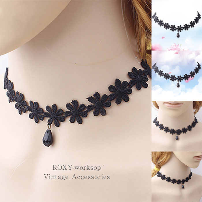 【送料無料】 レース ネックレス ペンダント チョーカー 花 エレガント ガーリー ゴス ゴシック ・・・