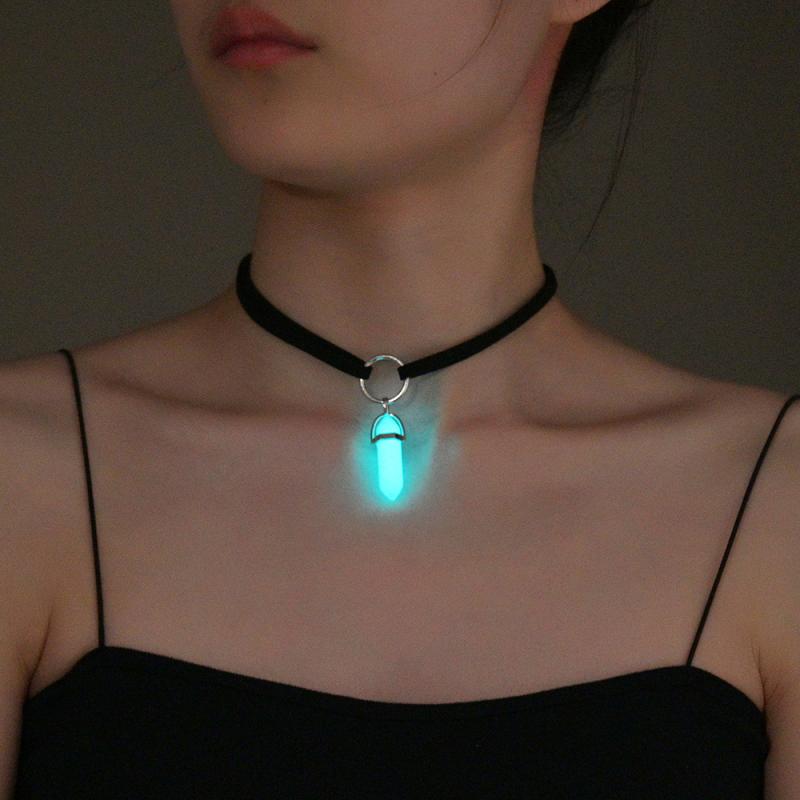 ネックレス 男女兼用 ゴシック風 個性的 蓄光 人工水晶 プリズム ペンダント ベロア ベルベット ・・・