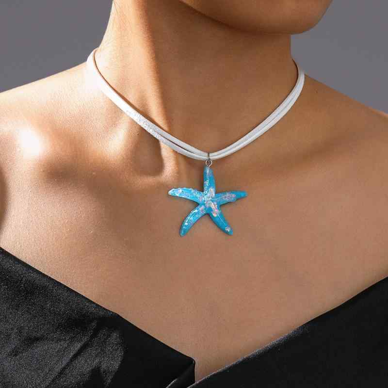ネックレス レディース マリンスタイル スターフィッシュ アクリル 合金製 電気メッキ加工 ダブルレ・・・