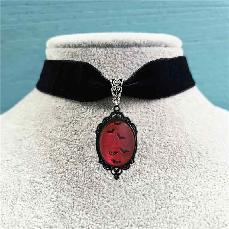 チョーカー メンズ レディース ユニセックス ゴシック コウモリ カラス モチーフ レッド ブラック・・・