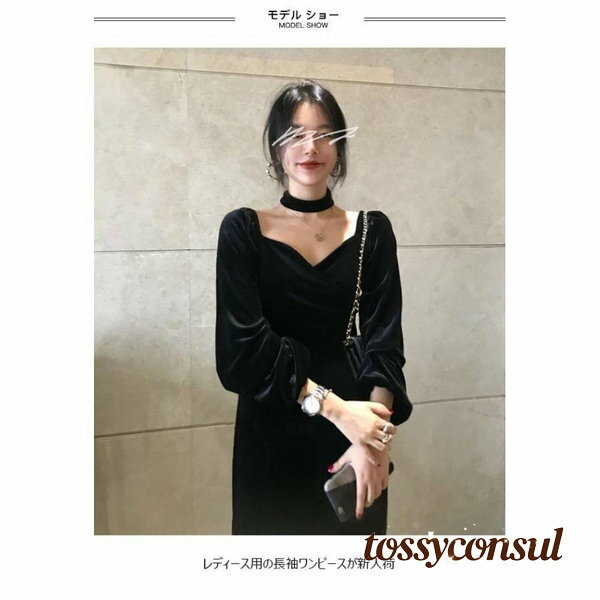 新生活応援 春 夏 ワンピース ドレス レディース 長袖ワンピース チョーカー 2点セット ベロアワ・・・