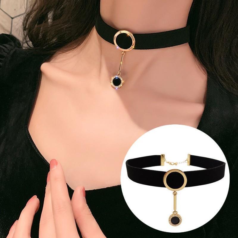 チョーカー 首飾り ネックレス レディース アクセサリー ベロア調 チャーム付き ラインストーン 円・・・