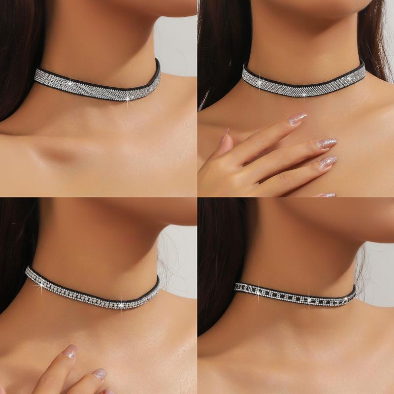 ネックレス レディース 高級感 上品 万能 ベロア ベルベット素材 ラインストーン クリスタル 鎖骨・・・