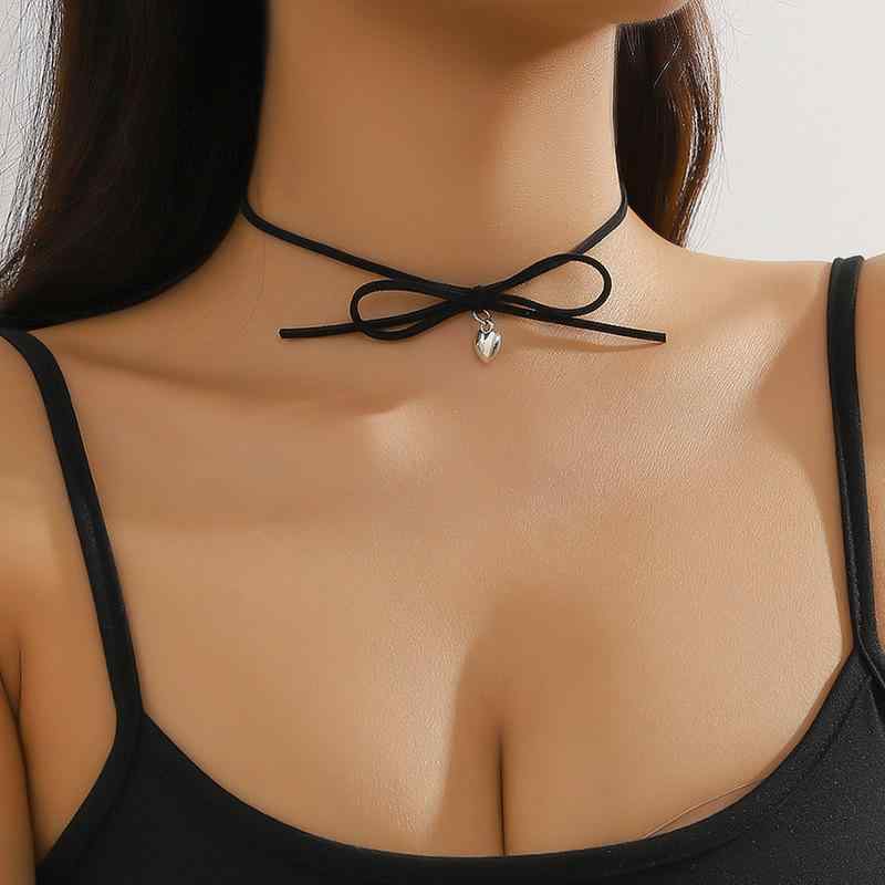チョーカー レディース レトロ ヴィンテージ ブラック レッド リボン ハート ペンダント ネックレ・・・