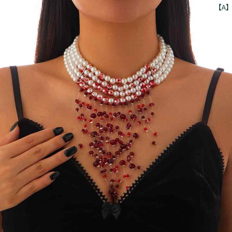 チョーカー ネックレス レディース ゴシック風 欧米風 フェイクパール クリスタル ドロップ フリン・・・