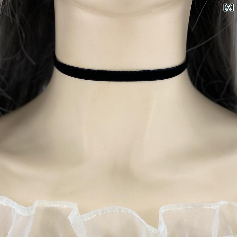チョーカー レディース 女性用 ゴシック シンプル 華奢 ベルベット ベロア ブラック 黒 鎖骨丈 ・・・